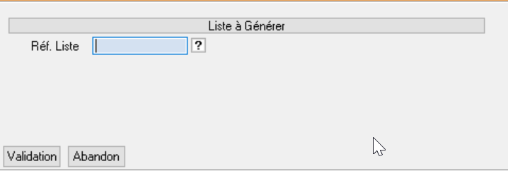 Le traitement n'est pas exécuté sur la liste d'articles en cours mais pour la liste d'articles que l'utilisateur a sélectionnée auparavant parmi l'ensemble des listes d'articles gérées en Mode Liste '10 : Liste Générée / Art. Géré en Stock' :