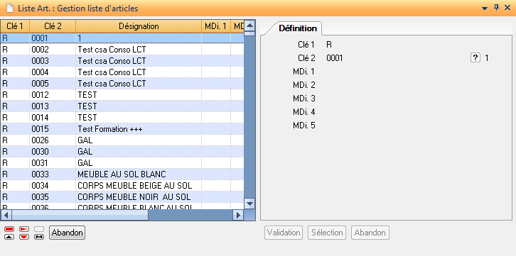 Mode Liste = '11 : Liste Gérée Manuel. / Art. Géré Stock'
