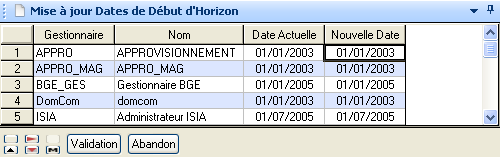 La dernière colonne permet de modifier la date de début d’horizon du gestionnaire.