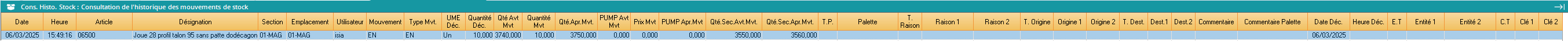 ▪️ Historique de stock (sans attendre traitement par le batch de stock)