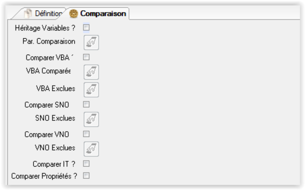 Comparaison des variables SNO et VNO rattachées aux pointeurs à comparer (certaines variables peuvent être exclues : voir paramétrage du scénario et paramètre général « NO-PTRCMP1 » pour les pointeurs de plus haut niveau).