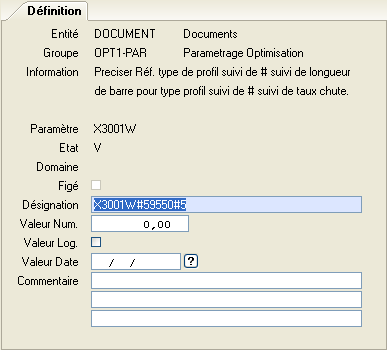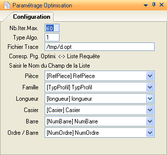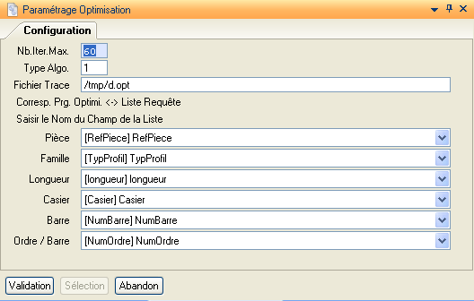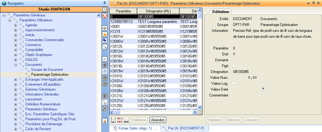 Il faut renseigner des « Paramètres Optimisation » (Paramètres Généraux / Paramètres Utilisateurs / Documents / Paramétrage Optimisation) afin de préciser pour chaque profilé :