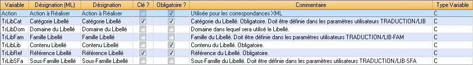 EntVar | C | TrLibLib | Nom du champ Contenu libellé | |
