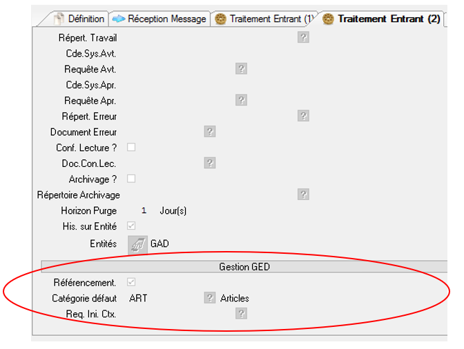 Req. Ini. Ctx.: Requête d’initialisation du contexte GED. Requête de type REB disponible pour les messages entrants de type ‘0’ (correspondance XML) uniquement. Exécutée lors du traitement du message, elle reçoit en contexte d’entrée :