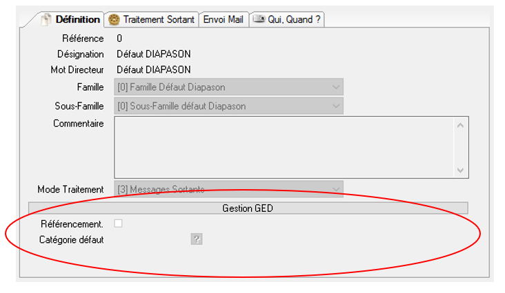 Catégorie défaut: Catégorie par défaut de référencement des messages sortants pour ce type de message. Voir définition des catégories : #Categorie