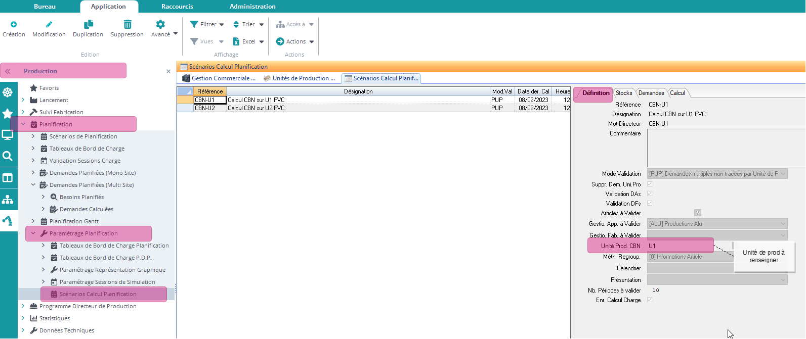 2. Créer un CBN pour chaque unité de production
