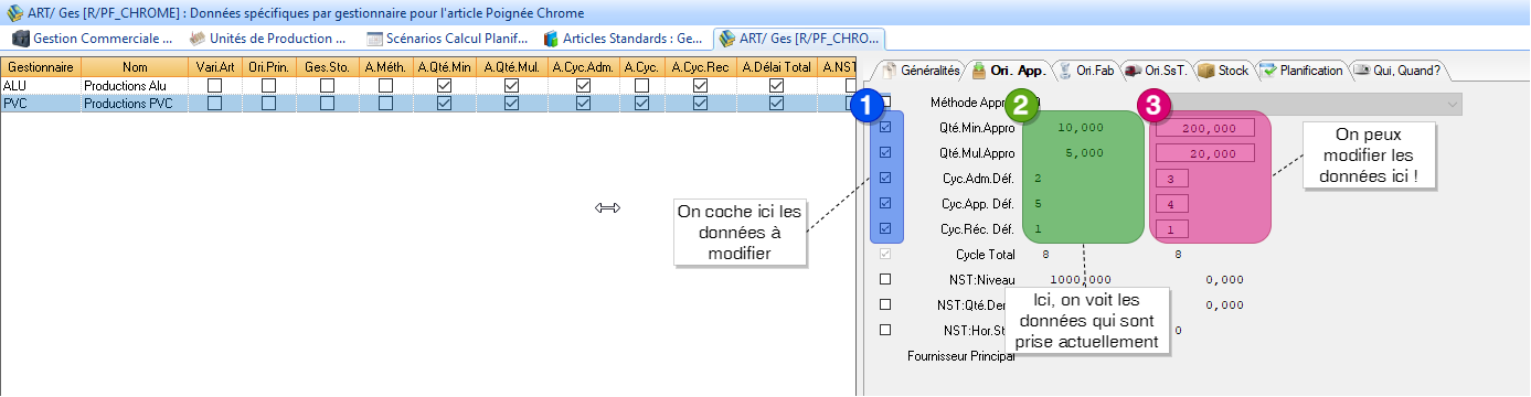3. Sur l’article, paramétrer les données multi-gestionnaires