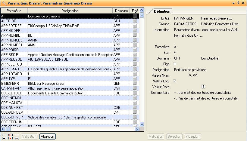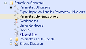 Les paramètres divers sont une liste de codes permettant de gérer le comportement de différentes applications dans DIAPASON.