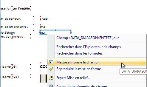 Sélectionner le champ dans le rapport, Action « Mettre en Forme le champ … »
