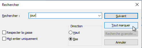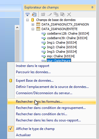Depuis l’explorateur de champ, Lancer l’action « Rechercher dans les formules … »