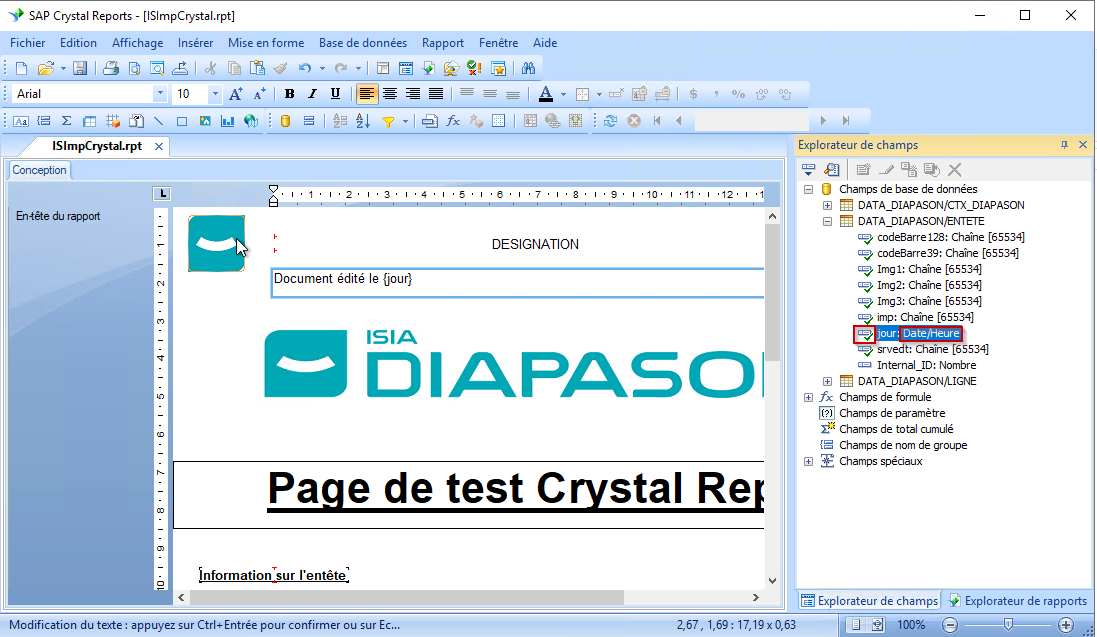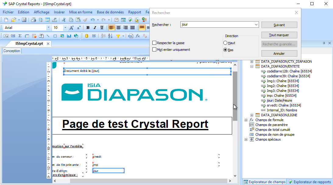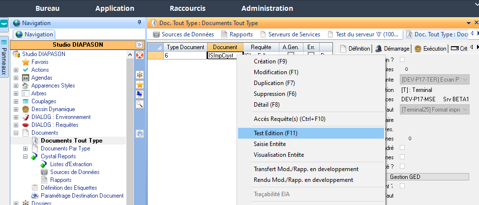 Sur un document utilisant votre rapport, lancer l’action « Test Edition (F11) »