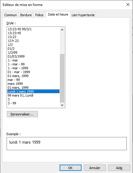 Sur l’onglet « Date et Heure » sélectionner le format que vous souhaitez