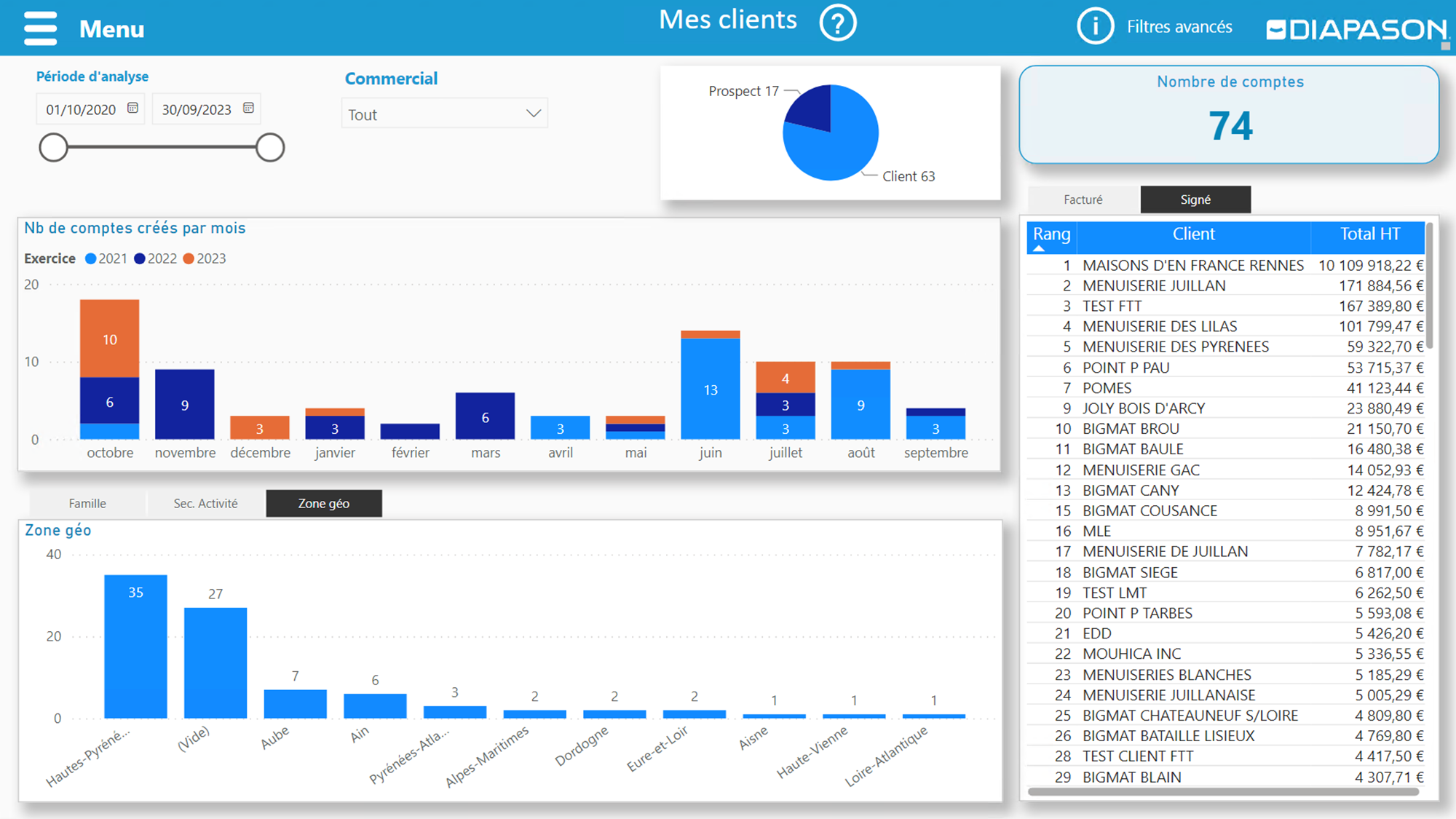 :note: Liste des clients répartit par montant signé/facturé