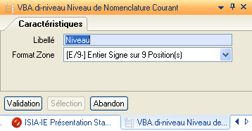 Après avoir sélectionné les champs (variables SNO, variables VBA, variables VAC et Listes Paramétrées), le bouton Validation enregistrera les sélections, comme le montre l’écran suivant :