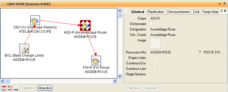 Sur la partie Liste (à gauche) figurent les différentes étapes de la gamme