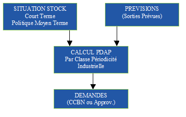 Le Programme Directeur d’Approvisionnements et de Production (PDAP) est utilisé pour calculer, à partir de données statistiques, d'un stock physique et d'encours de fabrication ou d’achats, des quantités à produire ou approvisionner pour certains articles en visant à des dates données des objectifs de couverture de stocks. Les quantités à produire ou approvisionner calculées sont lissées afin d'éviter les variations importantes d'une période à l'autre. Ce calcul est effectué à partir de règles précises (algorithmes) qu'il convient de bien connaître afin de paramétrer et d'obtenir des résultats cohérents et exploitables. Il permet ensuite, à partir des données calculées d’effectuer un calcul des charges. A noter qu’il faut dans la GFD des articles, renseigner les informations situées dans l’onglet ‘DONNEES du PROGRAMME DIRECTEUR de PRODUCTION’ pour qu’un article soit pris en compte lors du calcul du PDAP.