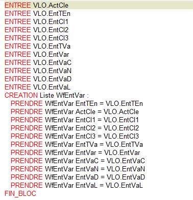 On utilise les listes standards de la fonction qui sont WfEntAct et WfEntVar.