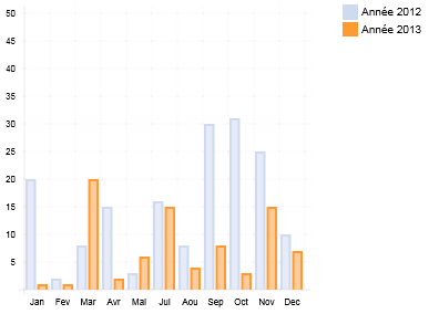 Histogramme | Couleur Remplissage Couleur Contour Barre | fillColor : « rgba(151,187,205,0.5) » ; strokeColor : « rgba(151,187,205,1) » ; |
