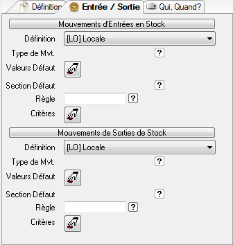 Elles permettent de paramétrer les mouvements d’entrées en stock relatifs aux co-produits pouvant être déclarés lors de la fabrication.