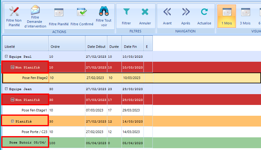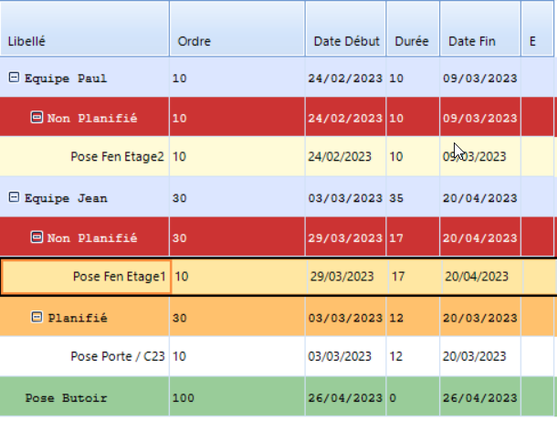 A noter qu’on peut également utiliser les champs Contrainte Date fin, Contrainte date début.. pour mettre en place des contraintes sur la planification, par exemple pour avoir un message d’erreur si on déplace une tâche au delà de la date Contrainte. Ces contrôles ne sont pas fait en standard ! Il faut bien sur paramétrer tout ça dans la requête. |