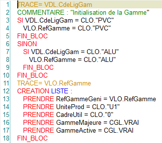 ![]() | Dans cet exemple, on récupère simplement la gamme qui est dans le champs “Gamme générique” de l’onglet standard Origine Fab du vari-article. |