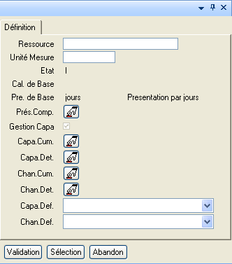 Capacité cumulée. Cette zone permet d'indiquer si seront créés des cumuls de capacités de plusieurs autres ressources (pour la même unité de temps), ce cumul s'exprimant sur une ressource "fictive".