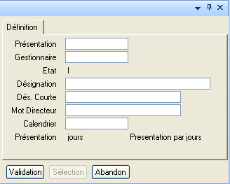 Permet de sélectionner un calendrier. Zone munie d’une aide présentant tous les calendriers définis dans DIAPASON.