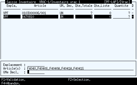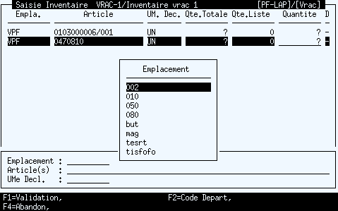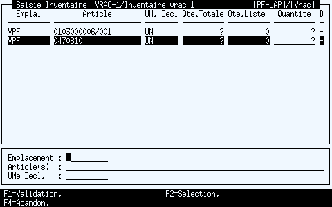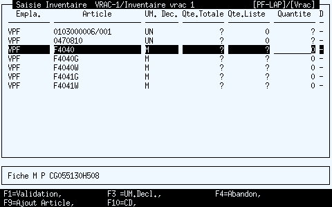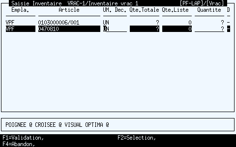 Les variables VBP et VCR disposent des valeurs connues à la fin de la précédente saisie.