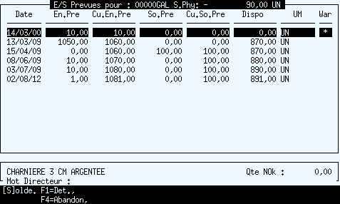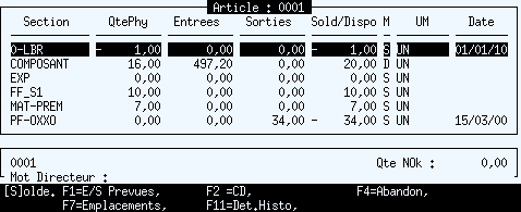 Permet d’afficher ou d’effacer une fenêtre présentant le détail du mouvement de stock courant.