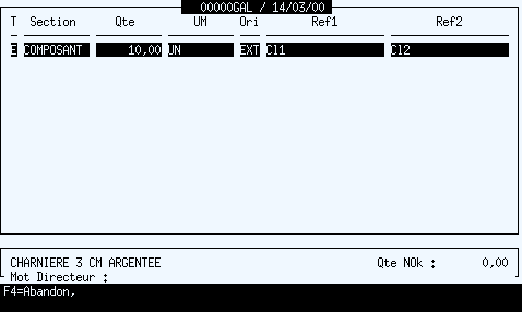 En entrée, lors d'un retour d'une saisie avec cette procédure :