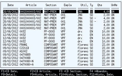 Cette application permet de consulter les mouvements de stock déclarés. Ces mouvements de stock sont présentés par date de mouvement décroissante.