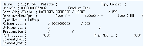 Numéro du Conditionnement (Palette) pour lequel le mouvement de stock a été déclaré