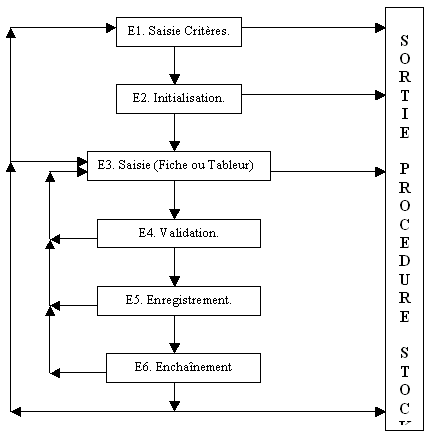 L'utilisateur peut valider (enchaînement sur l'étape 2 'Initialisation') ou abandonner (sortie procédure stock).