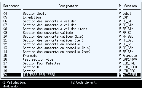 Section dans laquelle a été fait le mouvement de stock