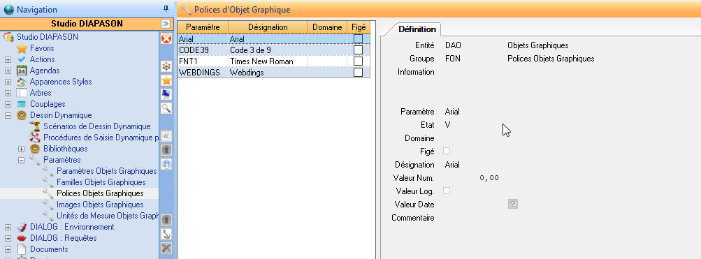 Gestion des polices: Les polices doivent être définies dans les paramètres « Polices Objets Graphiques »