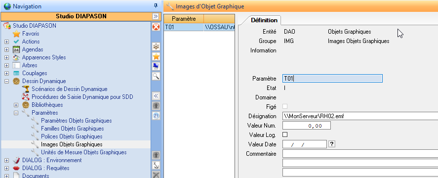 Les images vectorielles doivent être défini dans les paramètres « Images Objets Graphiques » et doivent être accessible depuis le serveur de Service pour la génération d’image et depuis le poste client pour la saisie de configuration .