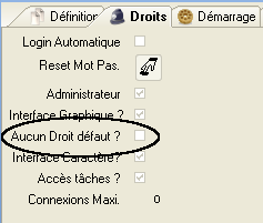 Par défaut tout profil est autorisé à tout objet (sauf si l’utilisateur est défini « aucun droit défaut » sur sa fiche utilisateur).