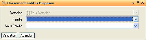 Les notions de famille et sous famille sont gérées par le client et peuvent être modifiées pour tous les objets à l'aide de l’action Classement.