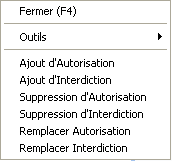 Les actions Suppression d'autorisation ou Suppression d'interdiction permettent de supprimer des classes ou des utilisateurs aux droits déjà attribués.