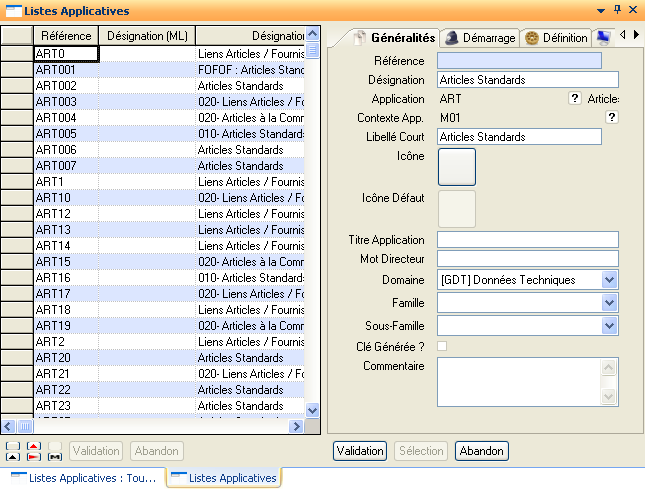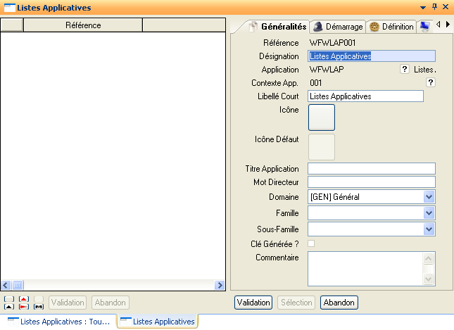 Génération L.App. Auto.: Lance l’application de définition des Listes Applicatives décrites ci-dessus en mode création.