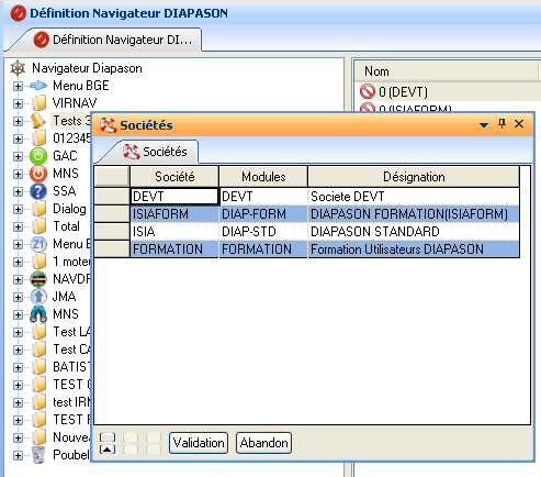 Définition Navigateur: Lance l’application de définition du navigateur pour la société courante. Voir chapitre ci-dessous.