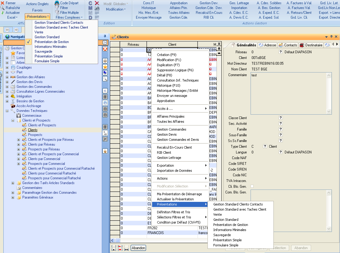 Remarque : La présentation ISIA-MINI (Informations Minimales) ne peut être supprimée de la liste des présentations accessibles.