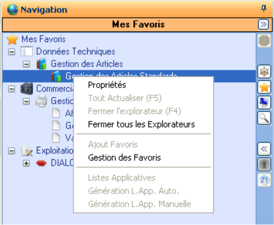 Gestion des Favoris: Cette action lance l’application de maintenance des favoris.