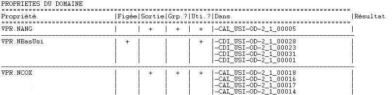 Cette partie recense toutes les propriétés liées au domaine sous forme de tableau tel que :