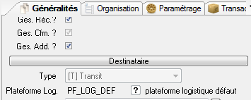 si la ligne de besoin de gestion n’est pas préalablement affectée au transit pour le gestionnaire de l’événement, elle est automatiquement définie comme ligne de livraison mais il est possible de l’affecter au transit (action interactive ou « ENR-ACT-EXP » : Maintenance Destination Transit).