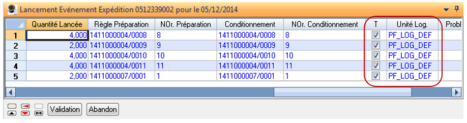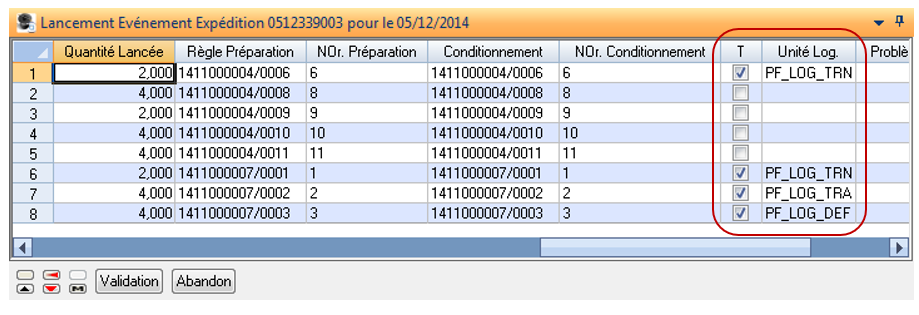Toutes les lignes sont en transit vers la plateforme logistique défaut de l’événement avec possibilité d’affecter certaines lignes à une autre plateforme logistique (action interactive ou « ENR-ACT-EXP » : Maintenance Destination Transit).