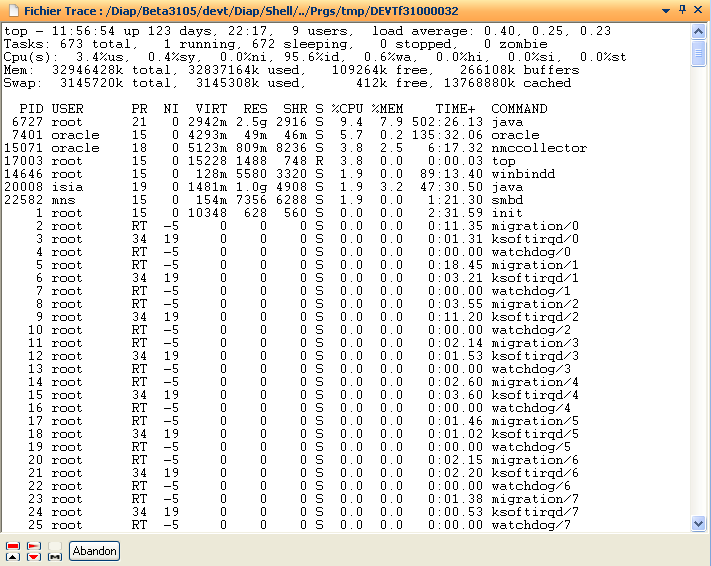 Cette action lance un éditeur affichant les principaux processus en cours sur le serveur.