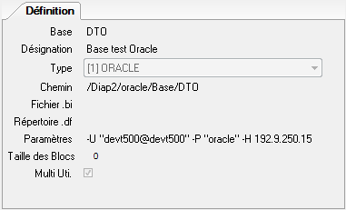 Dans l’application de « Gestion des Bases » du bureau « Exploitation », définir la base de données comme étant de type « ORACLE » en renseignant les paramètres de connexion.