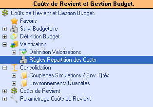 Cette application permet de définir les règles de répartition des coûts. Ces règles pourront être rattachées aux simulations de coûts de revient impliquées dans tout calcul de valorisation.