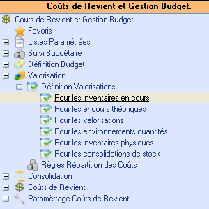 À partir de cet ensemble de données élémentaires, un environnement applicatif (Gestion des valorisations) va permettre de consolider ces quantités et ces coûts unitaires de manière à réaliser une valorisation des en-cours.